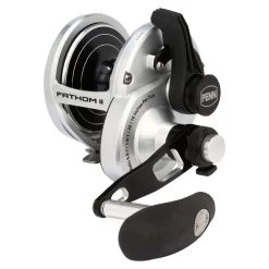 The all-new Penn Fathom II Lever Drag reels take a class leading reel and raise the bar even more. New models, sizing, features and optimized billfish models round out the assortment to give a model for every application. Integrating the palm side plate and frame allows the Fathom II Lever Drag reels to be more compact in hand, reduce weight, and increase strength, while the Pull-to-Turn preset knobs allows the angler to truly set it, and forget it. All new cosmetics also bring eye appeal to these reels, and will truly match any rod or boat.