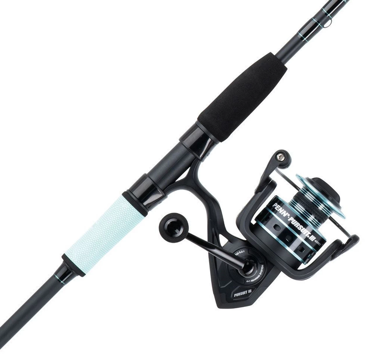 The Penn Pursuit III LE Combos are carefully designed with features to benefit female anglers. The rod handles are 10% narrower in diameter to accommodate smaller hands and are outfitted with Winn Grips for increased comfort. The reels that come with the Pursuit III LE Combos feature a lower gear ratio than the standard version, offering 15% more cranking power than a comparable Pursuit III combo. All benefits are designed to reduce fatigue over a day spent on the water.