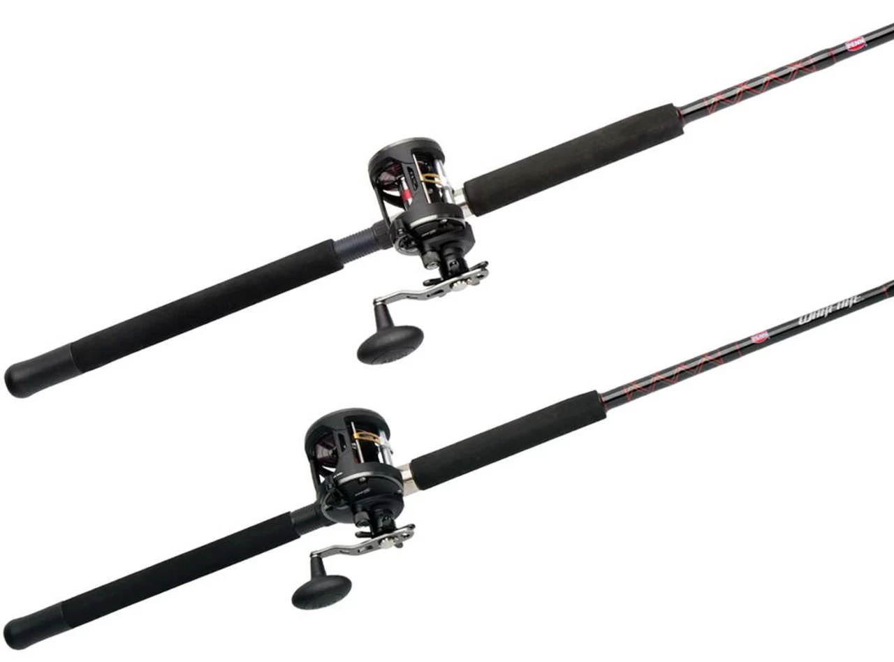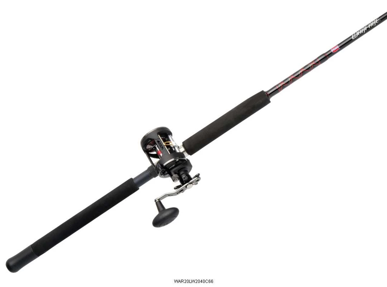 Penn Warfare Level Wind Combos are affordable and extremely versatile for all-around use. Penn Warfare Level Wind Combos feature tubular glass blanks with solid glass tips, a heavy-duty graphite reel seat, a triangle EVA foregrip, and stainless steel guides with aluminum oxide inserts. With a lightweight design and high line capacities, Penn Warfare Level Wind Combos provide heavy duty fish stopping power.