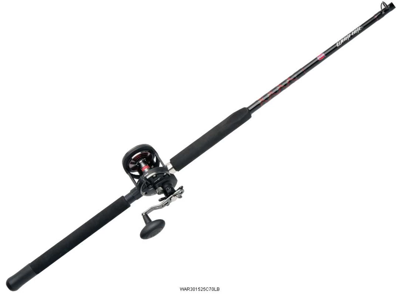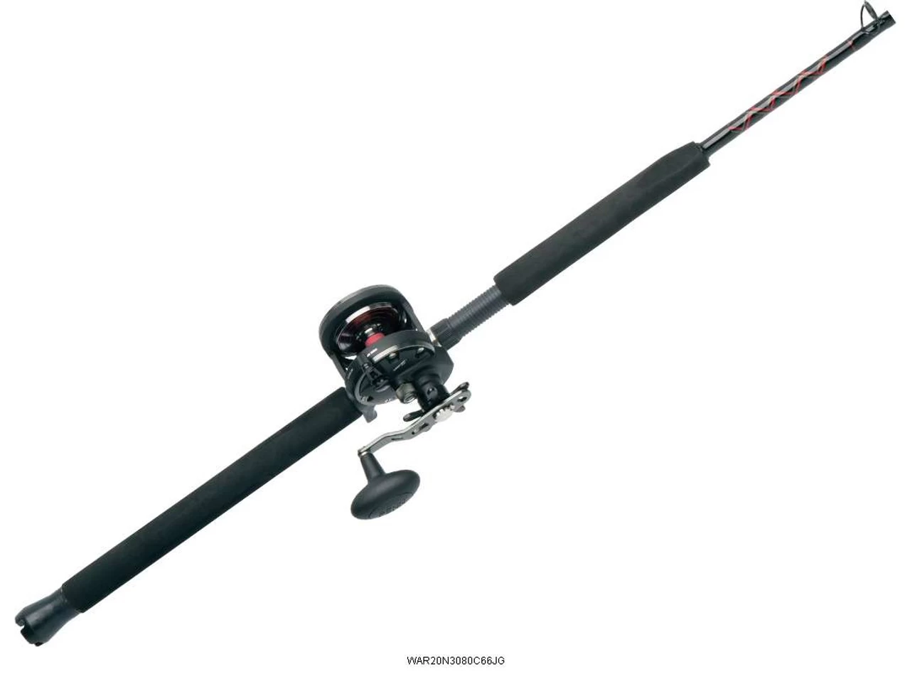 Penn Warfare Star Drag Combos are affordable and extremely versatile for all-around use. There are two Penn Warfare Star Drag Combo models: The WAR20N3080C66JG with tubular glass blank, and the WAR301525C70LB with tubular glass blank and solid glass tip. Both models feature a heavy-duty graphite reel seat, a triangle EVA foregrip, and stainless steel guides with aluminum oxide inserts. With a lightweight design and high line capacity, Penn Warfare Star Drag Combos offer superior fish-fighting power.